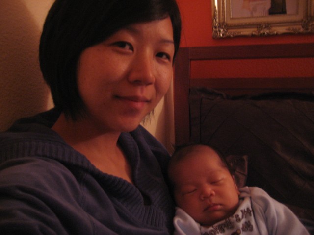 Annie with here eyes open and Elijah with his eyes closed
