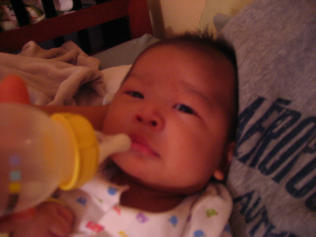 Content on mom’s lap. Burping.